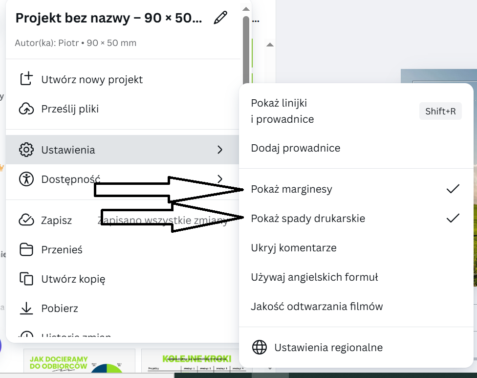 Krok 2: Włącz widoczność spadów i marginesów bezpiecznych